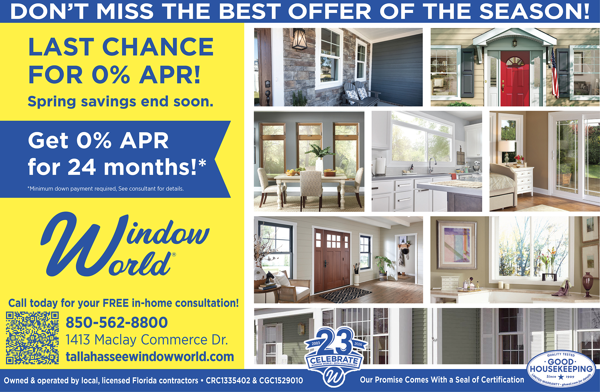 Window World of Tallahassee is Tallahassee's leading home exterior remodeling company, offering low-cost, energy-efficient replacement windows and sliding doors.